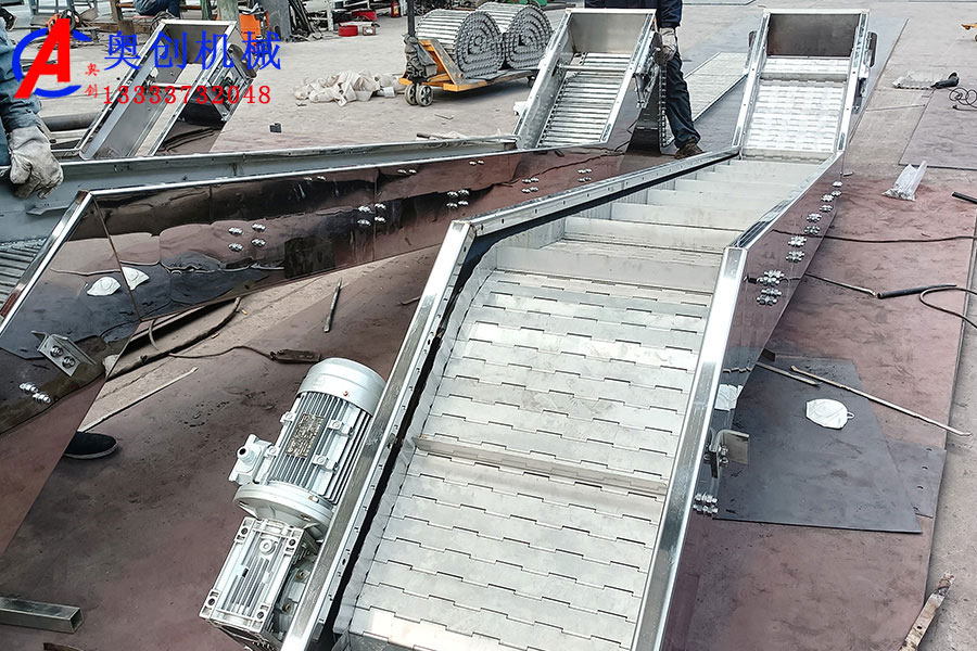 鏈板輸送機簡介 鏈板輸送機簡介鏈板輸送機是一種以標準鏈板為承載面,由馬達減速機為動力傳動的傳送裝置。鏈板式輸送機,由...